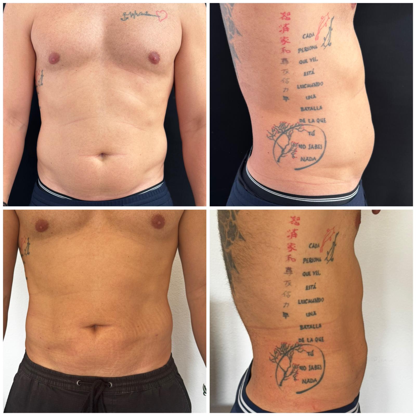 Aunque algunos pacientes notan una mejoría en la piel y una ligera reducción desde las primeras sesiones, los resultados más significativos se aprecian de forma progresiva. Tu cuerpo necesita tiempo para procesar y eliminar de forma natural la grasa liberada. Los resultados definitivos suelen ser claramente visibles unas semanas después de finalizar el ciclo completo de tratamiento.